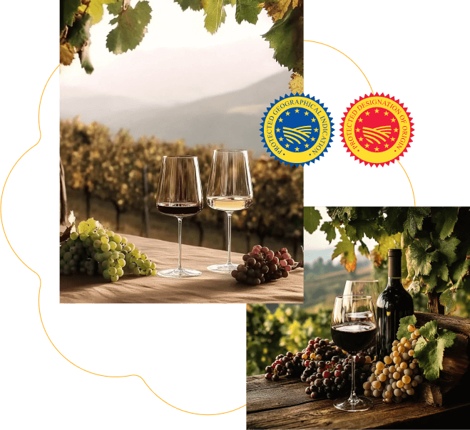 유럽은 특정 지리적 특성을 지닌 제품을 보호하고 홍보하기 위해 만들어진 EU 품질 시스템인 보호 지리적 표시(PGI) 및 보호 원산지 명칭(PDO)에 따라 보호되는 지역 와인 및 주류의 고대 풍미를 공유합니다.